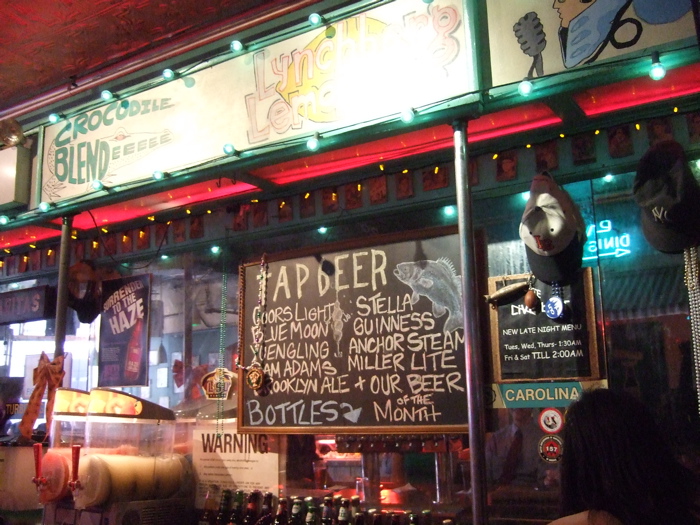 I’ve been pushing Zach to let me do an out of bounds happy hour at one of my favorite bars, Live Bait, for months now. Yeah, I know it’s all the way over on 23rd Street, but the N,R trains are practically next door and some things like great food deals and a lively, fun atmosphere are worth going out of your way for. Its reputation as an excellent neighborhood bar has recently infected the forums and LB has started to come up as a possible commenter happy hour location. With this as my leverage I asked again this week if I could do a review and finally broke the poor man down (women have a way of doing that.) With the green light to go forth and imbibe I grabbed my date and headed over to take advantage of their sweet down-south happy hour.