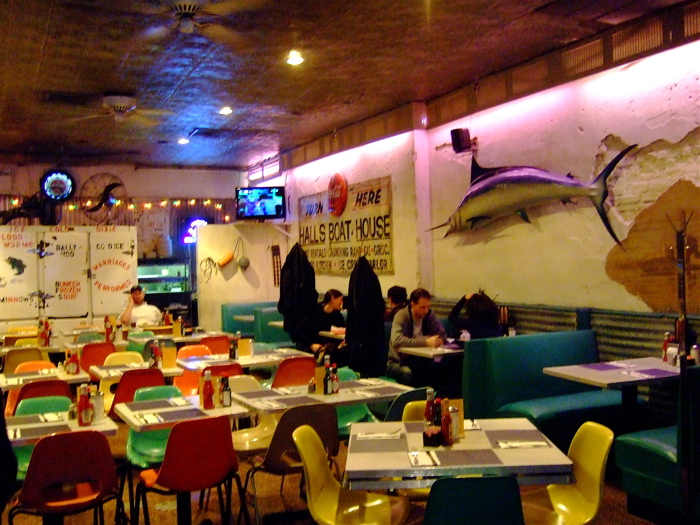 My first time at LB I was standing outside reading over their menu when a regular approached me and insisted I come in with the guarantee I’d love it. Patrons are very inviting in this way and the kitschy vintage décor all around makes for good conversation starters. There are stuffed alligators, vintage baseball cards, boat propellers, mardi gras beads, tin signs, and the 50’s back dinning area, complete with an impressive mounted sword fish distinguishes it from the usual carbon copy bar.