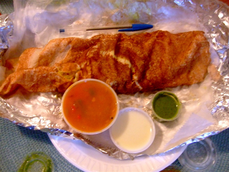 Grill 44 (on 44th btw. Lex+3rd) joined the kati roll revolution back in 2008 by adding ‘Indian burritos’ to their usual stream tray assortment of samosas, curries, lamb vindaloo and tikka masala. Now 44G is packing even more into their tiny storefront by serving a South Indian menu. It’s always dubious when a restaurant adds too many different items to one menu, but 44G seem to be pulling it off. I’m not a dosa expert by any means, but my taste buds know flavorful delicious food… so I set forth to expand my horizons.