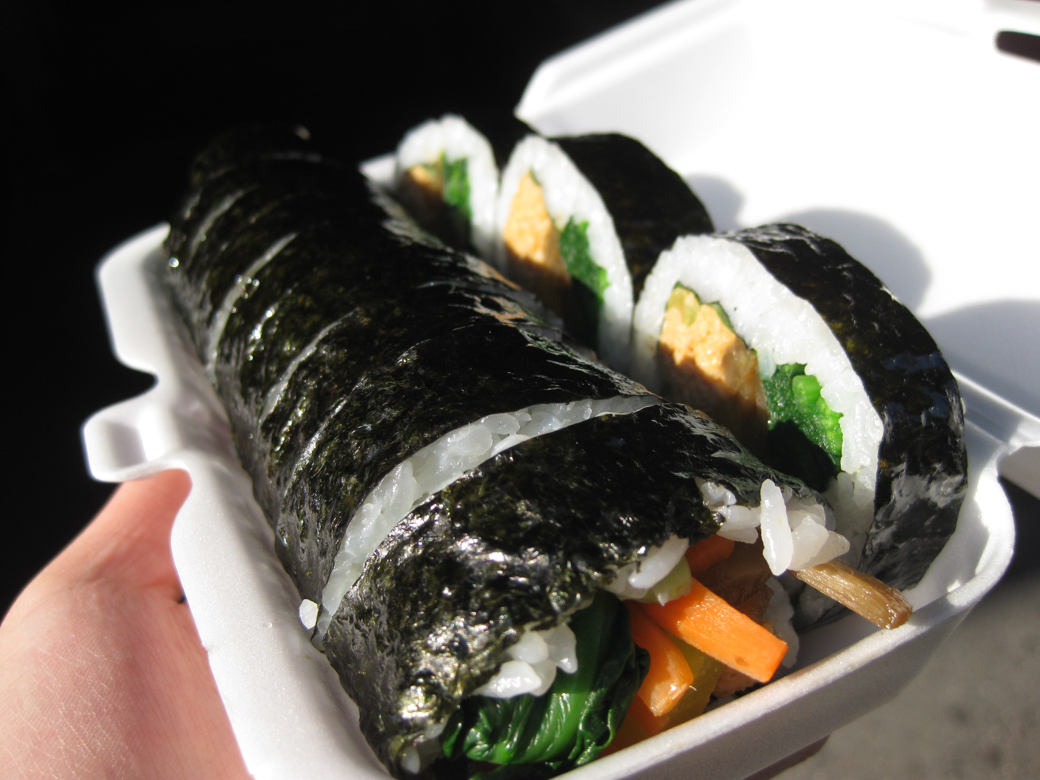 Though it comes with a small soup (passable), it might not be a lunch for the ravenous. But don’t let its seemingly healthy appearance fool you into thinking your doing yourself a favor by passing on the Korean fried chicken line– kimbap are packed with more rice than you’d think, making it a snackbomb that dieting Koreans avoid at most costs. (Zach, I’m looking at you.)