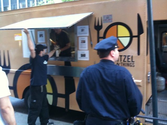Is there any truck in Midtown that gets into more trouble than the Schnitzel & Things truck? There was the fight with Mister Softee, the catching on fire, having their tires slashed, and having the cops called on them by Fox News. But this could be the craziest. According to Business Insider (via Grub Street), they were forced to leave their spot on 54th and Lex after somebody from the Citigroup building called the cops and claimed they were a terrorist threat. Sure, the aftermath of a schnitzel burger could be considered a dirty bomb of sorts- but terrorist threat? That’s a little extreme, don’t you think?