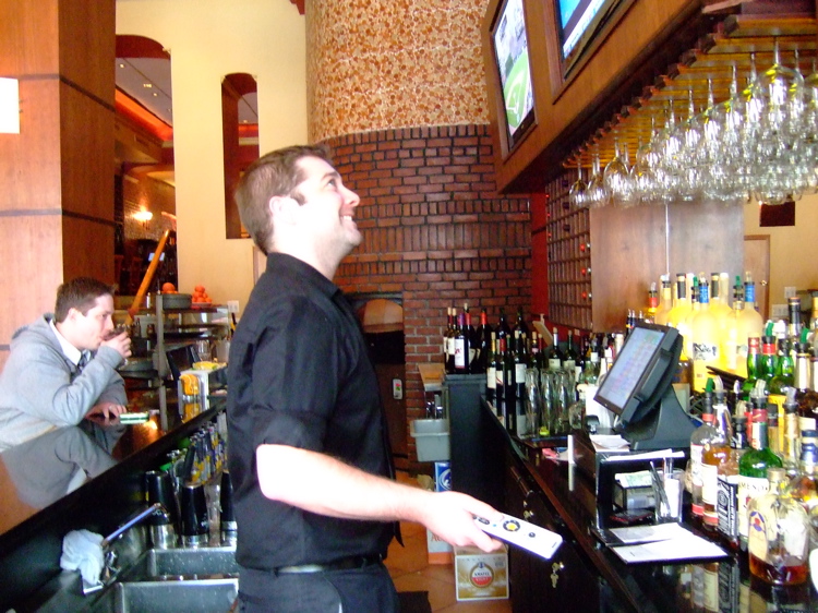 A good thing can sometimes be found in an unexpected place. Commenter Adam told me about Pasta Lovers’ 1/2 off special over a month ago (on 49th btw. 6+7th), but I hesitated because it smacked of an over priced, generic red-sauce Italian joint. However Pasta Lovers’ time has finally come and this week I spent a lazy afternoon taking full advantage of their happy hour, enjoying some conversation with strangers -and a cute bartender!