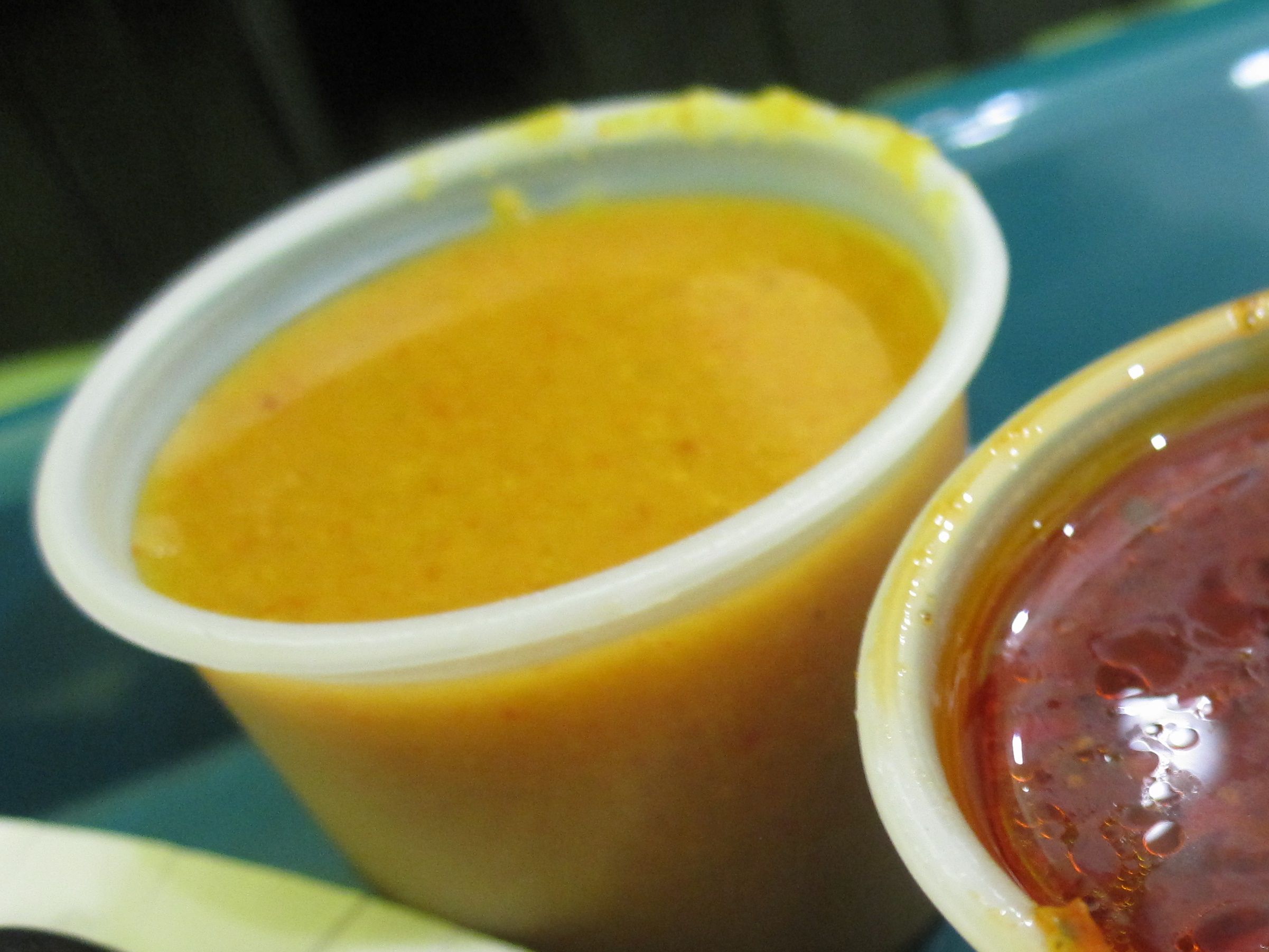 Perhaps most important, to me at least, is the inclusion of amba, that spicy, sour mango sauce stuff. Unsupervised access to this stuff is a rare and beautiful thing. I end up putting copious amounts of it on everything, and if I’m at Pita Joe in Union Square, I’ve been known to throw lids on a few of the containers and take some home (I’ve been horribly unsuccessful in finding it in stores, anyone know where I can get some?). There was also an oily hot sauce and some sort of yogurt or tahini sauce. Sorry, I don’t have much to say about them… I was too busy off in amba land.
