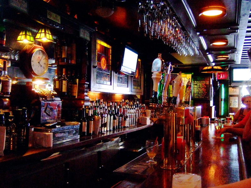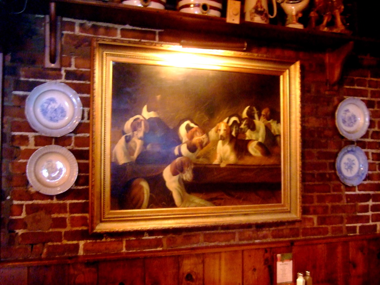 The décor is quirky with a row of dusty ceramic roosters above a classic old register, mounted enameled serving plates, steins, ornamental casks, dreary oil paintings and one painting where the dogs are remarkably absent of poker cards. It’s like your grandpa’s collection of liquor and Irish themed brick-a-brack, mixed in with grandma’s china collection. There’s a significant amount of nostalgia and.. err…“blarney.”