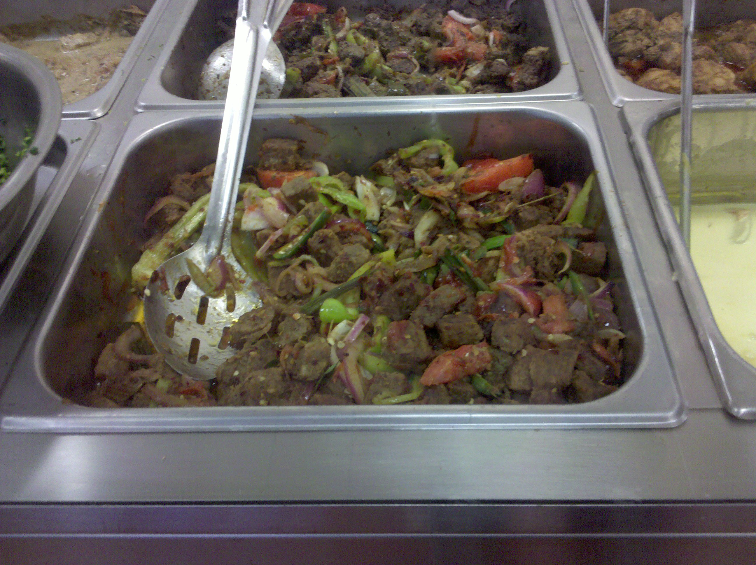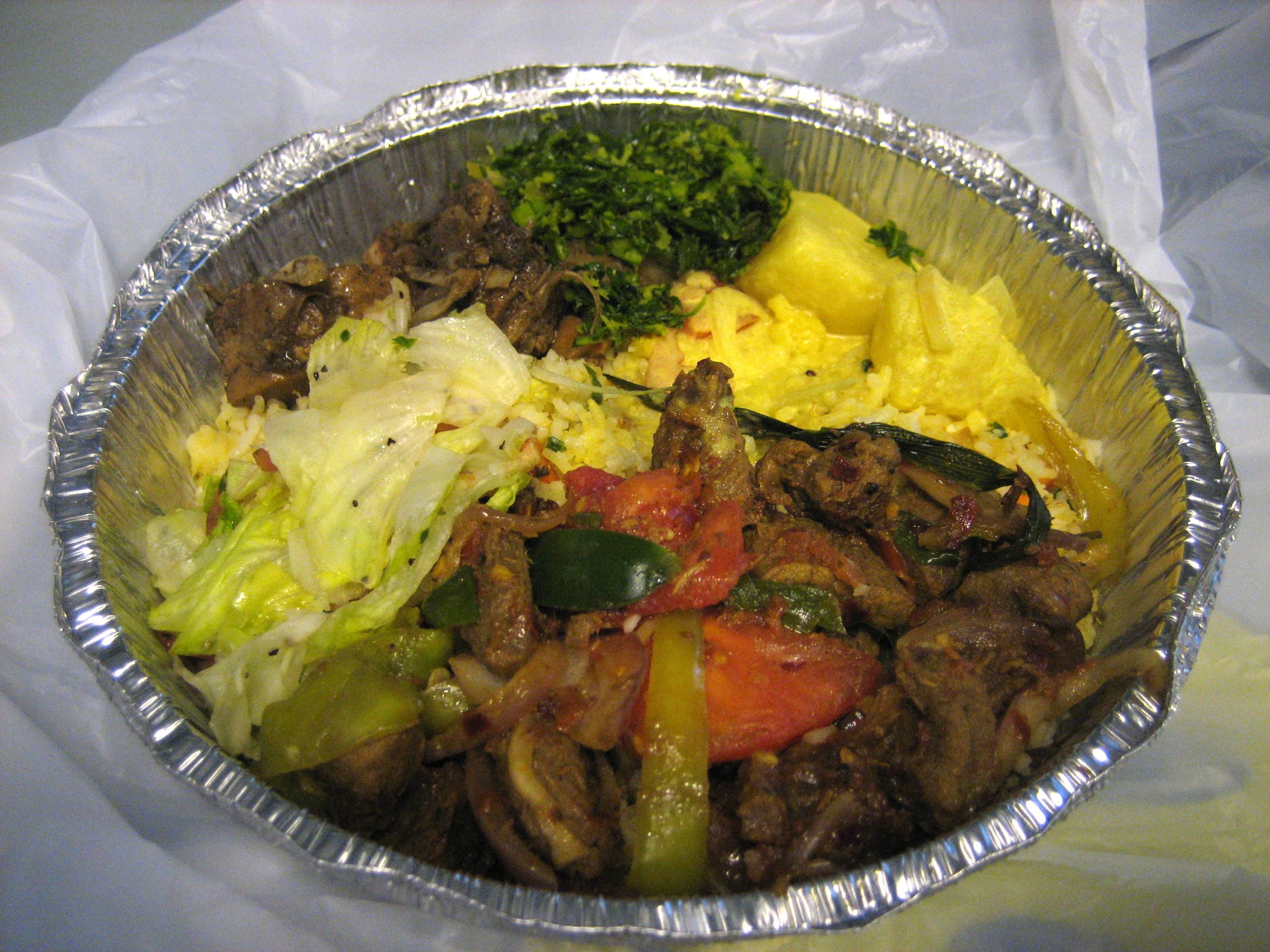 There you have it. My $5 Sri Lankan lunch adventure. The plate is finished off by standard salad that I hardly remember eating. The beef and potatoes were great and definitely worth going back for. The jackfruit and leafy vegetable were memorable in their own way, though for my taste they are recommendable more for being an experience than for being tasty. The rice and salad were nothing special, and there seemed to be a lot of rice, so much that when I had finished picking at everything else, I didn’t even bother to finish it, and I usually finish everything.