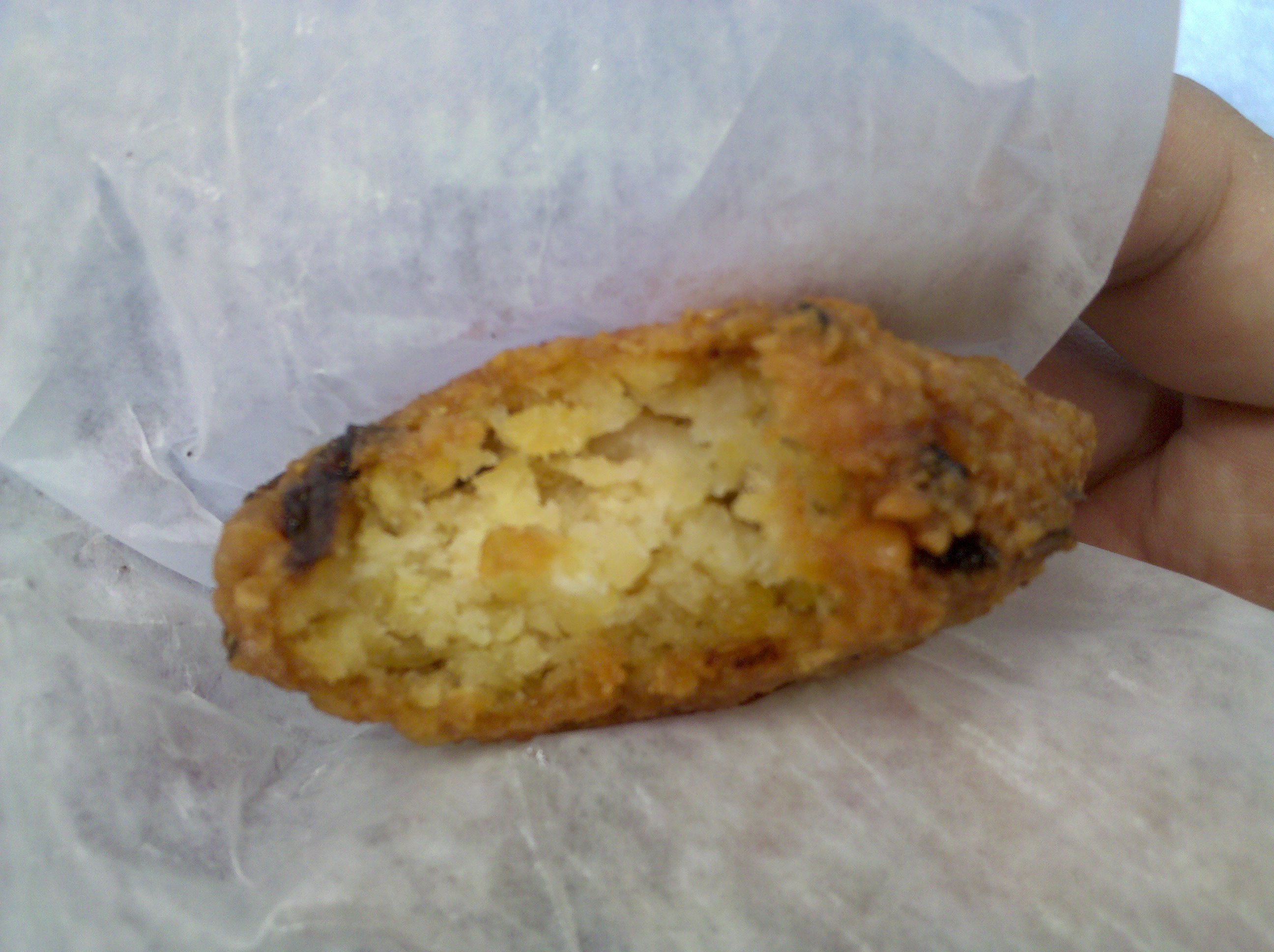 As I was cashing out, I inquired about these little fried things. They told me some had tuna and some had chicken. They gave me one of the small round ones, which they only described as “chick pea,” for being so inquisitive.