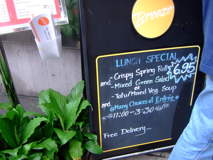 Who doesn’t like an all day happy hour? I walked by Breeze Thai-French Kitchen this week and was intrigued by their drink specials that run all day. From 11AM to 11PM they offer $2 shots, $3 beers and $5 house well drinks at the bar. I love a good deal that I can catch at any time!