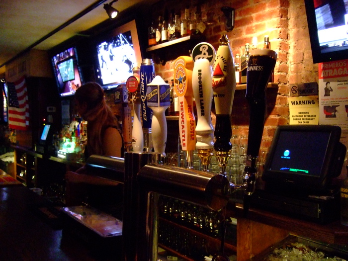 Happy hour is all night with $5 Stoli mixed drinks, cosmos, and shots of Patron, Jameson, and Jager. The draft selection is decent with some of my favorites: Blue Moon and Brooklyn Lager.