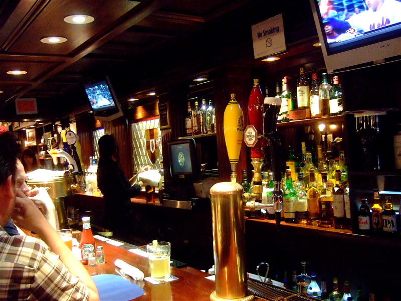 Ah yes, convenience, that hidden snake in the grass to comes out to bite you, in this case in the wallet. I walked into Maggie’s Place and it looked like a nice, clean Irish bar with a drinkable selection of drafts on tap: Stella, Harp, Guinness, Bud, Boddington’s, Smithwick’s, Goose Island, and Old Speckled Hen.