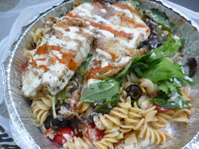 Agreed the tilapia is good (I also have never ordered fish from a truck before), but it just doesn’t work with the tuna fish in the pasta. I would prefer the option of getting the tilapia w/ the cous-cous and veggies or just hold the tuna; it’s too pungent. I’d suggest anyone getting this to try asking for an alternative to the tuna.