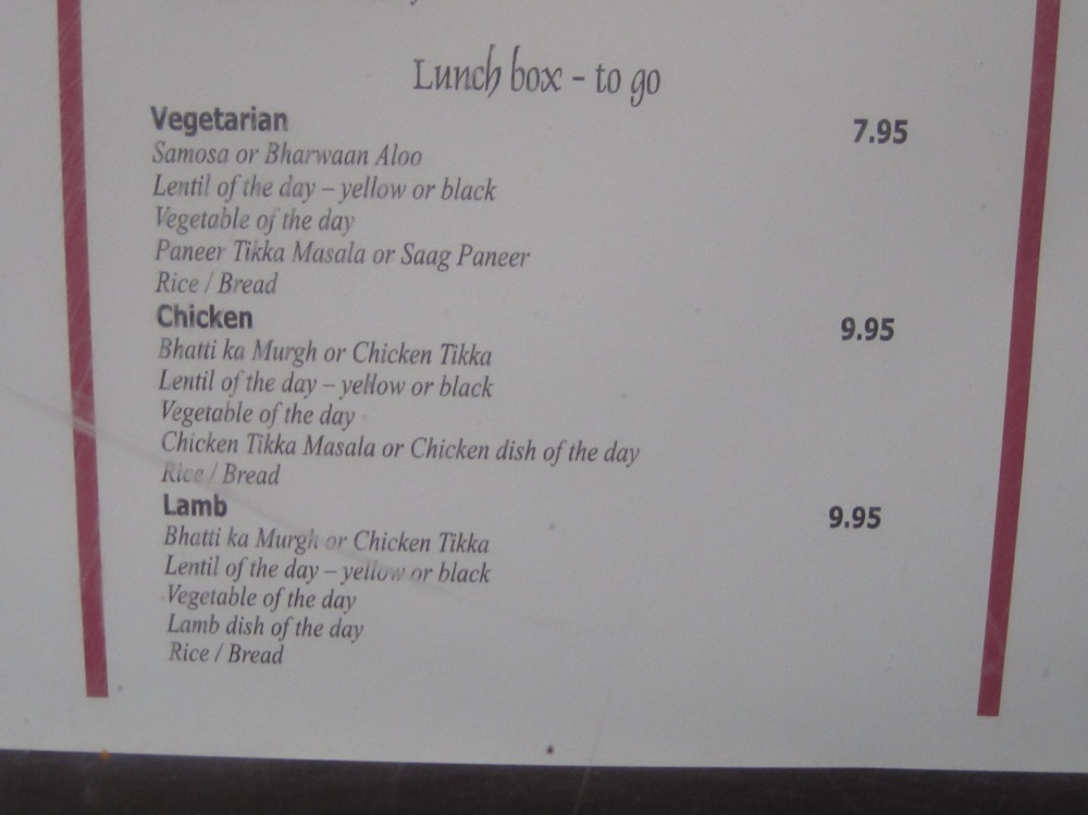 Note: Bhatti offers an in house unlimited lunch special served family style with even more dishes (but still almost no flexibility) for under $10 (without tax and tip.)