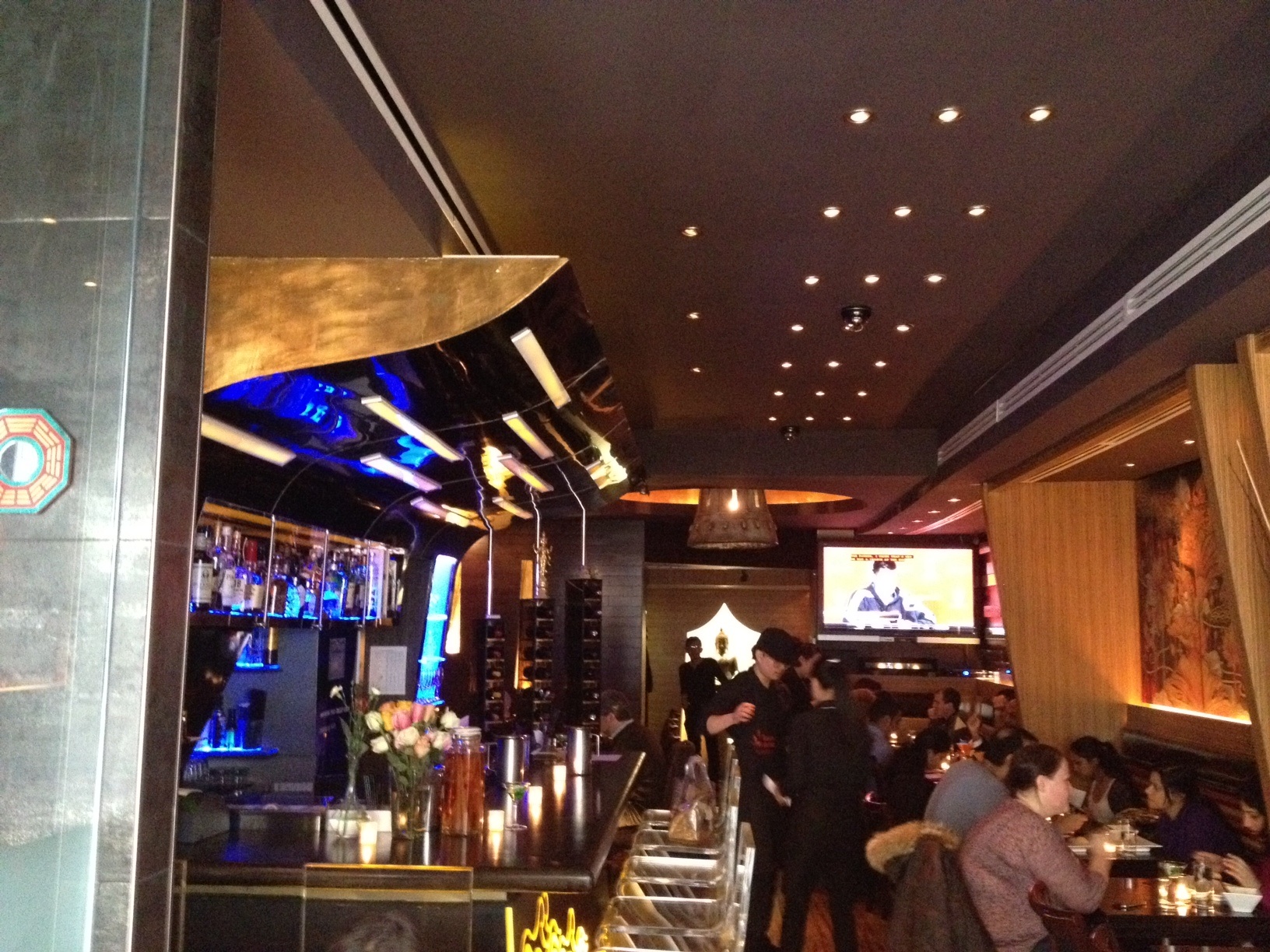 First, I will preface this by saying that the interior of Jaiya is a bit fusiony. Is the waterfall really necessary? Also, the dark interior with neon glowing lights might remind you of the inside of a limo. In addition, there is a lot going on with decor featuring different types of wood, wall coverings, colors, etc. Not to mention the flowers in bizarro colored gel-filled martini glasses on each table as decoration are almost enough to make one hightail it out of there… or just call in an order for pick-up and enjoy your food elsewhere.