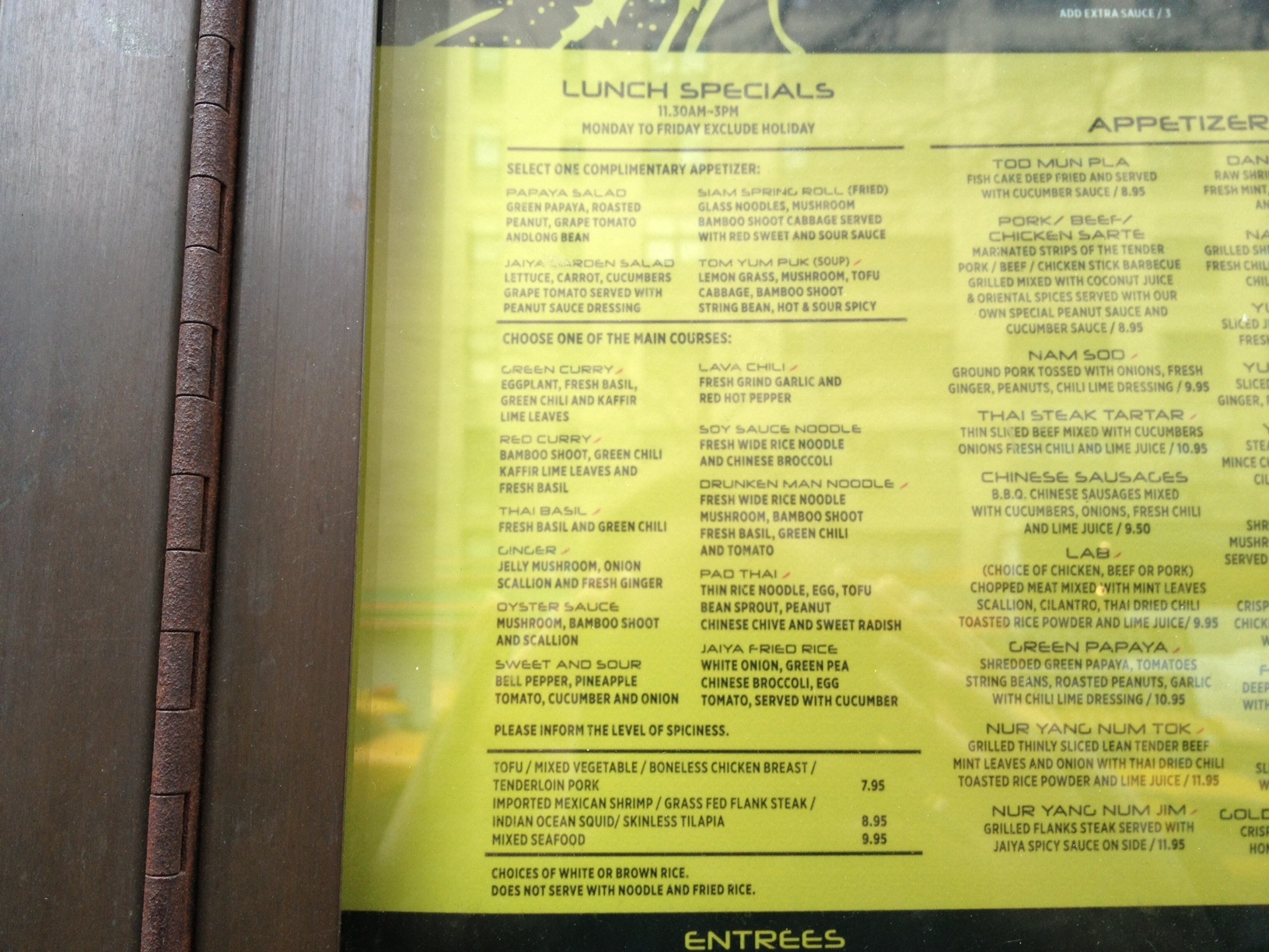 My personal Thai food history is a bit of a pad Thai haze. I’m not proud. But I have been working to expand my horizons and really search out the best in town, which brought me to Jaiya.