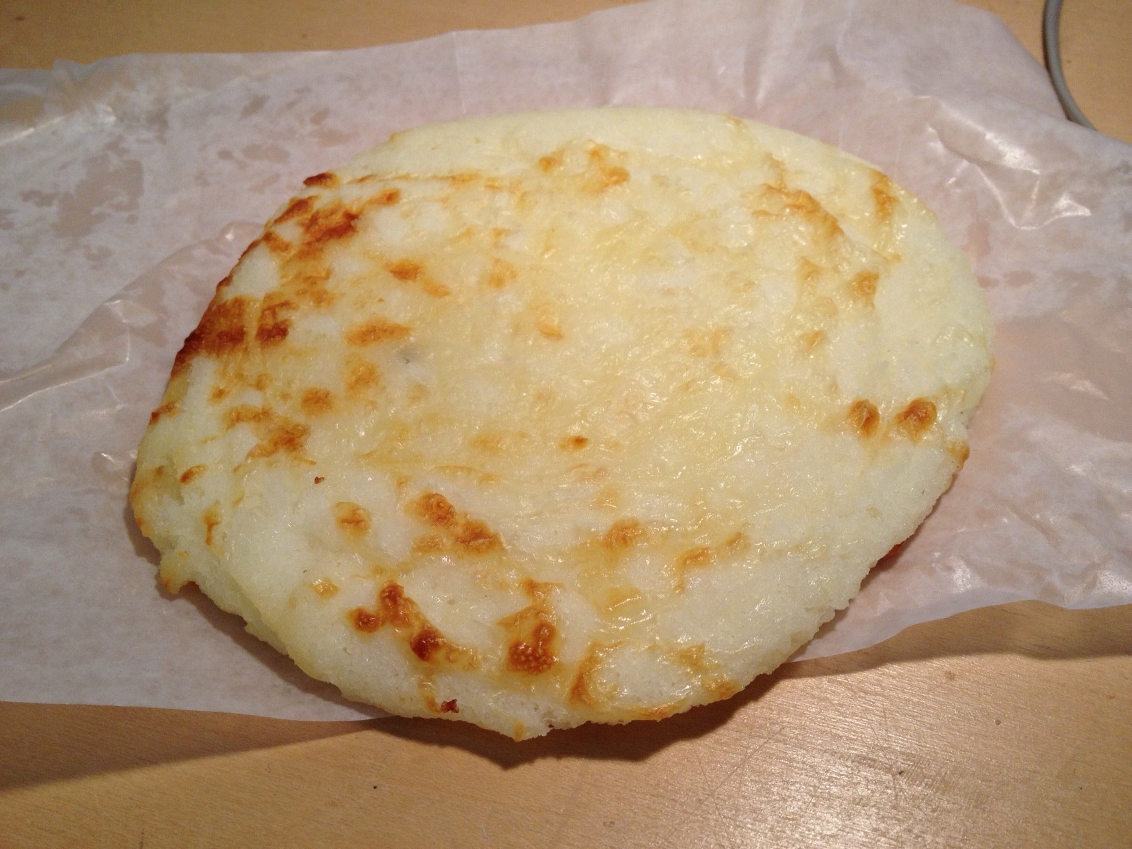 I also tried two of the bakery items that will stretch the boundaries of the ML budget. The Arepa de Queso ($2.75) was a great upgrade on the arepa vendors you see at street festivals all summer, which despite all the griddling and cheese taste bland. This arepa reminded me of flat corn pancake with a nice covering of cheese baked on top. It had a great corn taste with a grainy corn texture (like polenta.)