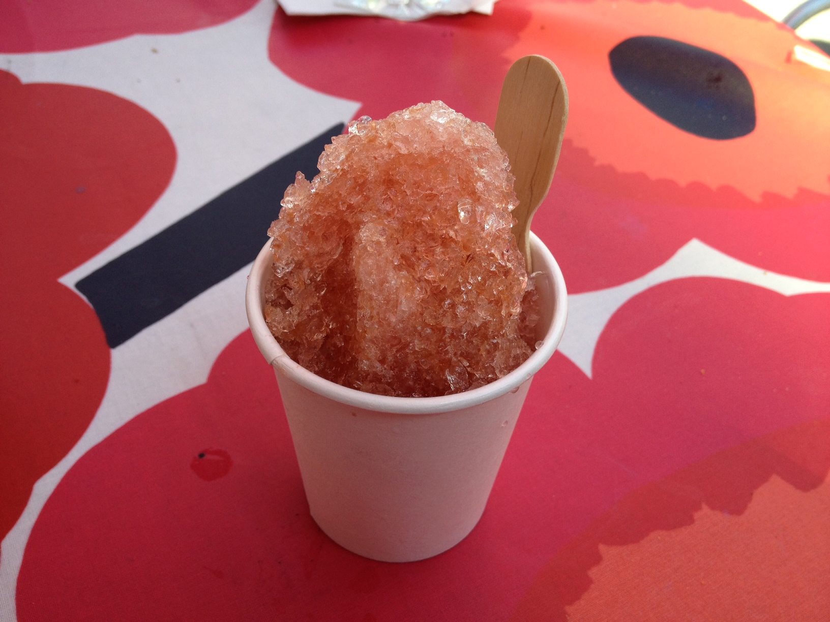 When it was hot and sunny (like I hope it will be for the last week of the festival), I opted for People’s Pops. I tried the red plum shaved ice (pictured) and the raspberry basil pop (not pictured). Of course, these capped two different meals, but both are great options after your possibly fried and probably greasy lunch. The pop had more depth of flavor while the shaved ice was a more enjoyable texture to eat in my opinion.