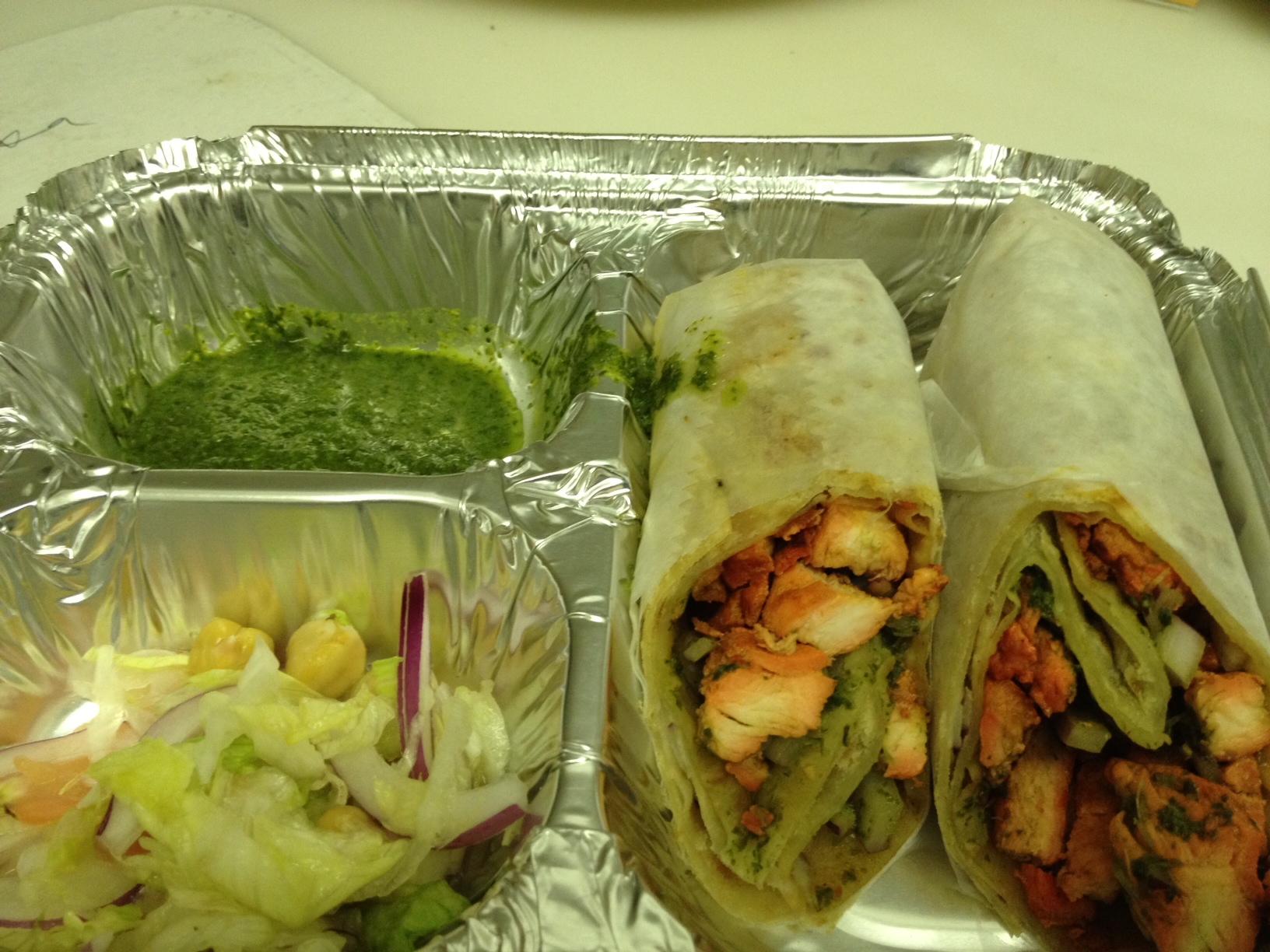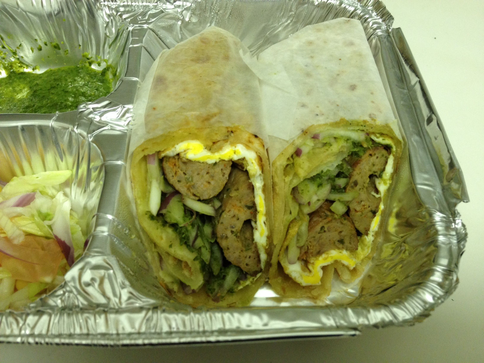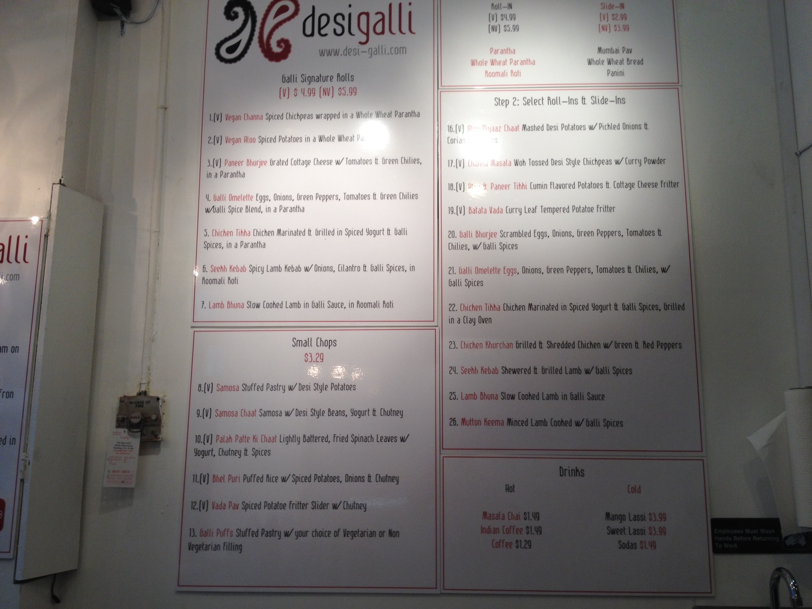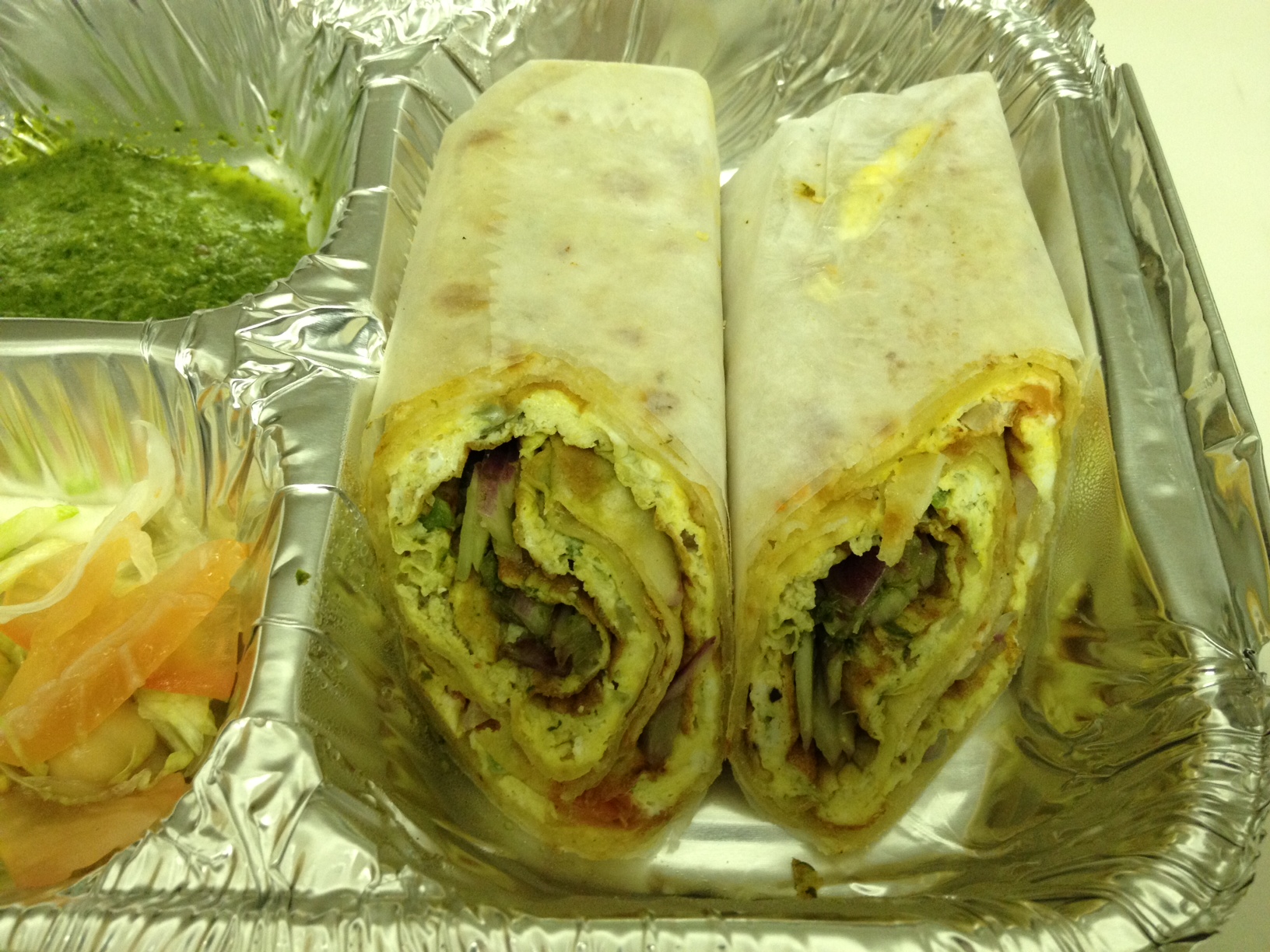 The menu (also online here) has a pretty large range including six appetizers/sides they call “small chops” all for $3.29. They have seven signature rolls for $4.99 for vegetarian and $5.99 for non-veg. They also give you the option of making your own roll if you have something special in mind.