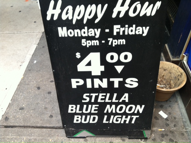 If you like to eat, chances are you like to drink (read: a lot of you are freakin’ lushes), so I thought maybe it was time to introduce a happy hour column to the site. Every week, our Happy Hour Correspondent posts about a different bar in Midtown that fits the Midtown Lunch mentality: unhealthy food, not lame (unless it’s lame in a cool way), and most importantly… cheap.