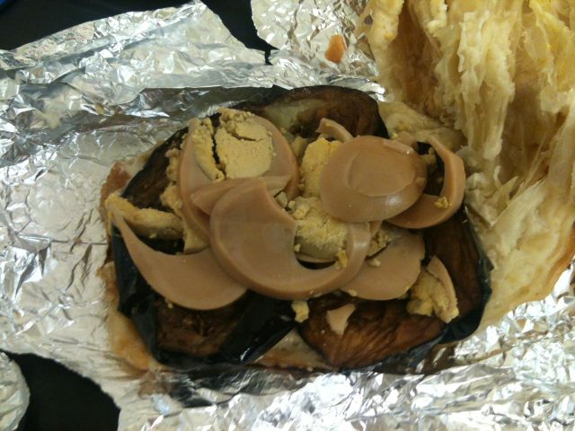 The eggs were creamy and had a somewhat different taste than regular eggs. And, the feta was not too overpowering. Here are some pics, open and shut. Those are totally not canned mushrooms as they might appear to be, but the “whites” of brown boiled eggs.