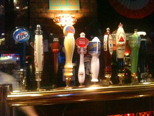 They have a draft selection you would expect in an Irish pub — some examples are Guiness, Harp, Yeungling, Bud, Killian’s Red, Sam Adams, Bass, and a few Brooklyn Brewery choices. According to the bartender, they accept all major credit cards and cash. They have Tuesday night karaoke at 7:30 so beware of that.