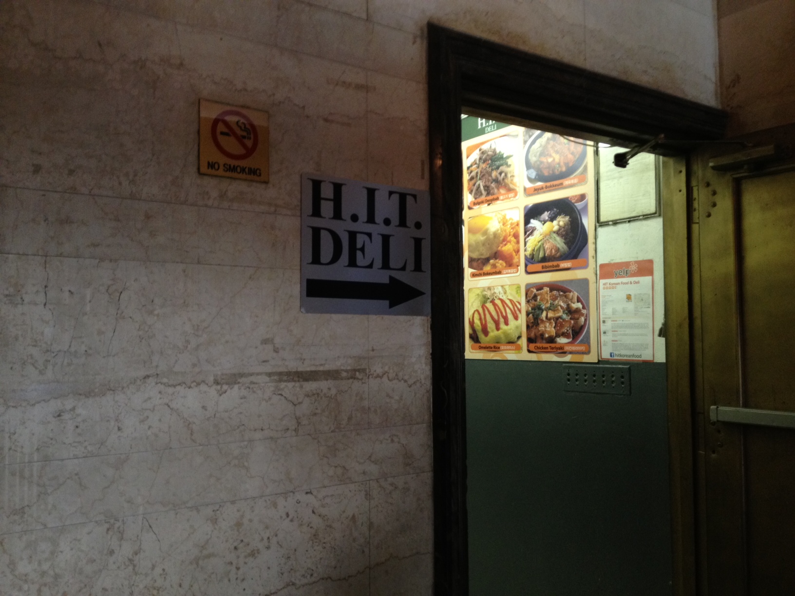 Not sure what I mean by through the lobby of an office building? Well, if you look closely at the photo above, in the center of the photo near the bottom, you will see a small square sign that reads: H.I.T. Deli.
