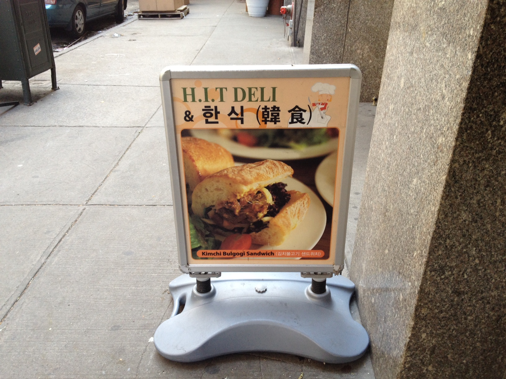 Now about this word “Deli” in their name. While it is not prominently advertised with oversized color photo posters, they do offer a few deli type sandwiches for $6.95 (turkey club, reuben, etc). But clearly the reason you would go is for the Korean food and not the deli sandwich. In fact, during my time there, I don’t remember hearing a single person order anything off the deli menu. But before we write off the deli menu altogether, there is a single item on there that peaked my interest called the Kimchi Bulgogi Sandwich ($7.50). Intriguing, right? I haven’t had the chance to see if it is as interesting as it sounds, but I had to tempt you all to try it with a photo of it courtesy of the sandwich board out front.