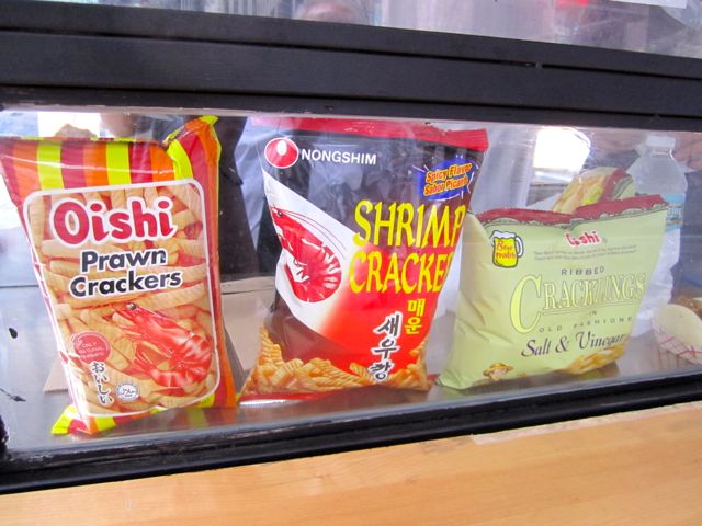 They also have three types of chips, Oishi prawn crackers, Nongshim shrimp crackers, and Oishi salt and vinegar cracklings. The menu prices haven’t changed: $3 a bun or an $8 2-bun combo with chips and drink, or a $9 3-bun combo, also with chips and a drink.