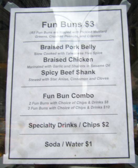 The Bian Dang Taiwanese food truck’s spinoff, Fun Buns cart, has been parking in Midtown more often lately. They’ve been attracting the attention of Downtown lunchers, and Brian wrote a post about the Taiwanese style buns a few months ago. I kept seeing them pop up on Twitter in that same spot on 48th btw 6th and 7th on a Friday and then again on a Monday (although I later found out Monday is usually at 46th and Park). I was hoping to try the lemongrass chicken that wasn’t available before would be there so I could give it a try, and to see if anything else was new. Here’s what I found out.