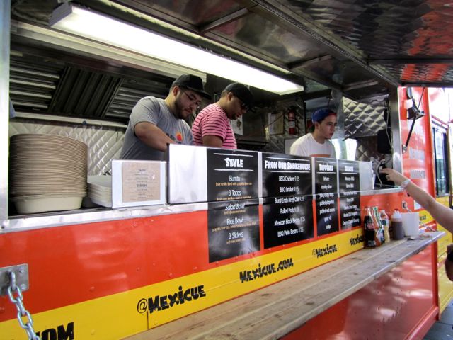 I’ve been trying to hit up all the food carts parked at the New York Public Library (40th + 5th) to accompany the Lunch Hour NYC exhibit. Often, the trucks parked there aren’t in my area of Midtown, so I’m trying them out while I can. They have a brick and mortar store (7th btw 29th and 30th) which is just out-of-bounds, but the Mexicue truck doesn’t make its way to midtown too often. So if you would like to try it out without the trek, today is the day you’ll want to hit it up…