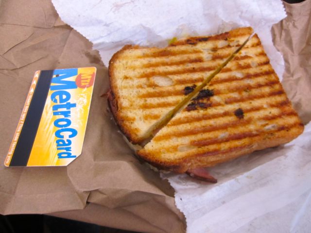 My office roomie is privy to my moonlighting and noonlighting activities as a contributor at Midtown Lunch, so she offered to help me out by ordering a sandwich that we would split and swap, so I could give reviews on two. What a gal. It was a scorcher of a day, but not far to walk for us. Plus it seems like the food truck lines by the library are a bit more organized as of late, extending into the eating area in front of the library rather than blocking the sidewalk all the way to 5th avenue.