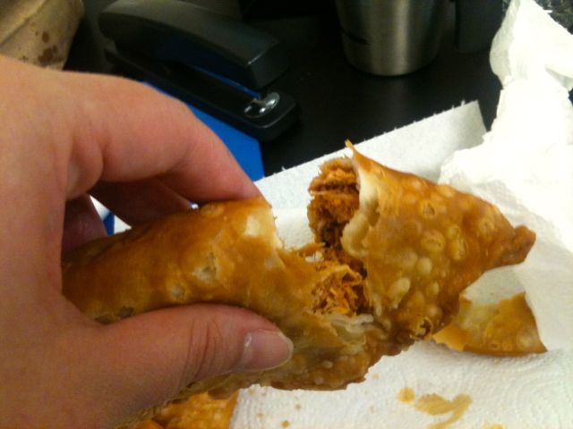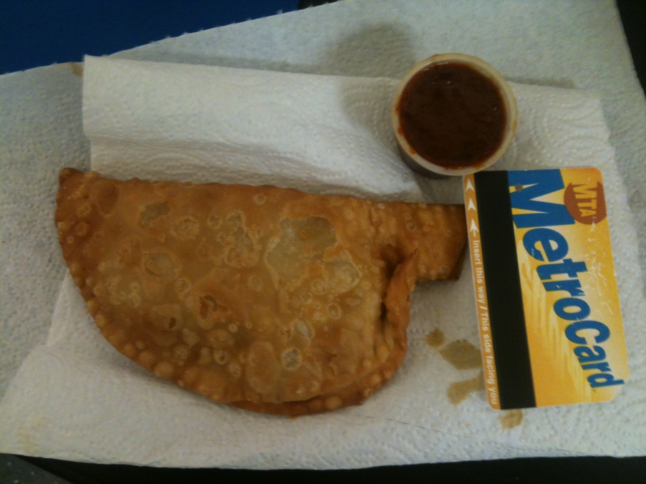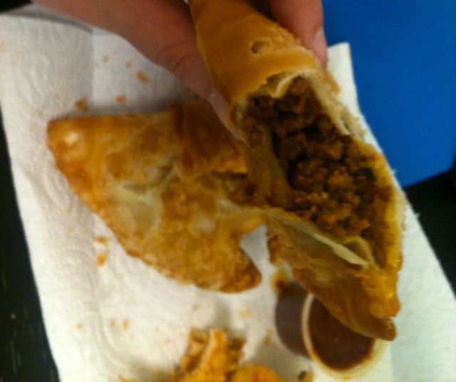 I tried one beef, one chicken, and one cheese to get the full range of tastes. I love that they are nice and big — even bigger than the ones I’m familiar with in Queens. All three were crammed with filling. The crust was deep fried and white flour-based; it was a bit greasy but I was expecting that.