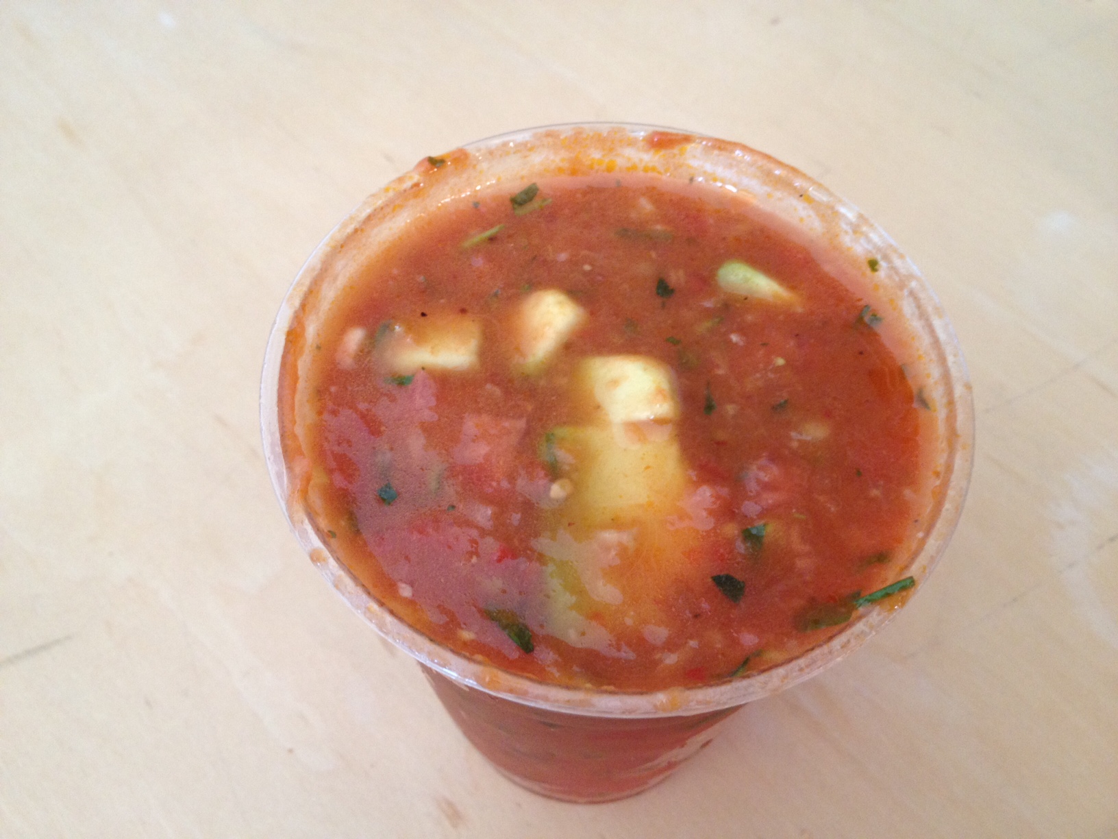 Based on the glowing review of the gazpacho, I had to get that as well. It really is a class above other gazpachos with great combo of pureed and chunky veggies. It was hearty and almost meaty tasting. The description said it came with avocado, but it didn’t say that it was almost a whole avocado, which added a silky texture throughout. It had a little bit of spice, so be warned, but, really, it was outstanding. At $6.25 for the large, it will certainly put you over the ML budget, but after over-hearing such a ringing endorsement, how could I not try it?