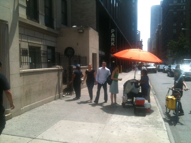 Not long ago, I began my quest to try all the tamales midtown has to offer by starting off at Sophie’s and trying a Cuban style tamale for the first time. Zach went on a similar tamale trek in 2008, and I’m excited to revisit midtown tamales four years later to see what’s still delicious and what’s new. I was fortunate enough to get some excellent recommendations from Midtown Lunch readers in the comments of my last post, and one comment inspired me to visit the “Tamale Lady” outside of the Mexican Embassy (39th Street btw Madison + Park). She received a proper review back in 2007, and the experience sounded like fun. Is she still there? I had to find out for myself.