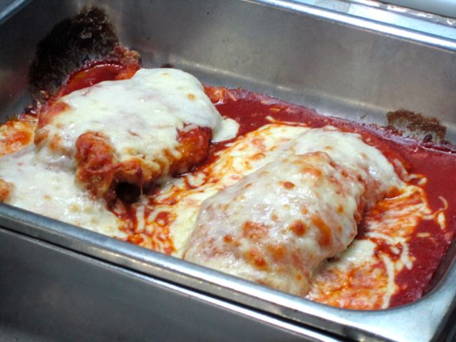 Happily, I hadn’t had lunch, so I tried the chicken parm the friendly guy behind the counter suggested that had just come out of the oven. Although the prices aren’t as cheap as they were back in 2008, I’m not complaining in 2012.