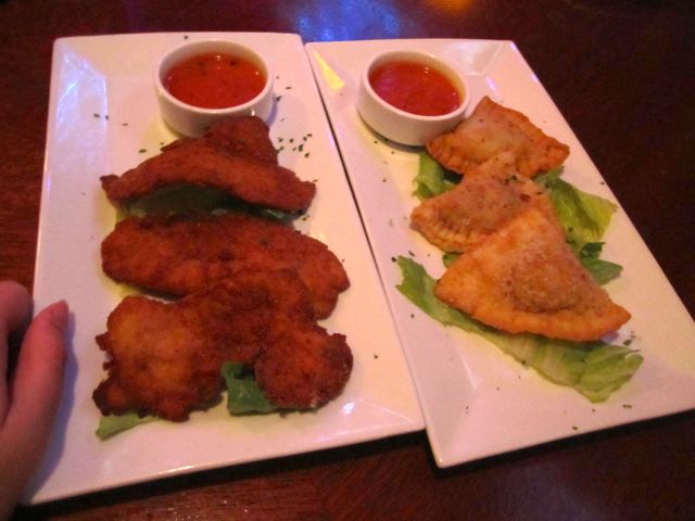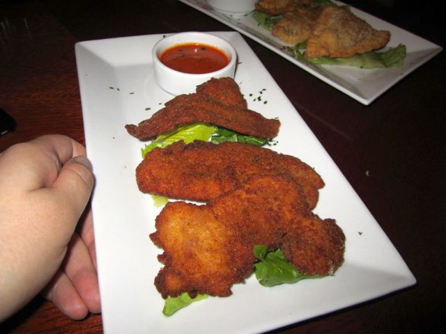 And the chicken… *sigh*. For $5, there were three tiny slivers of chicken breast, breaded and fried. I would’ve liked to have had MJP’s famous Leatherman on hand at the time to measure the thickness of these chicken pieces because I’m betting that almost every slice of pizza he has reviewed are thicker. They had a good flavor, but were quite dry. The chipotle sauce they came with seemed more like tomato sauce than chipotle sauce, but it had a nice, mild flavor (this is also the sauce they used for the empanadas).