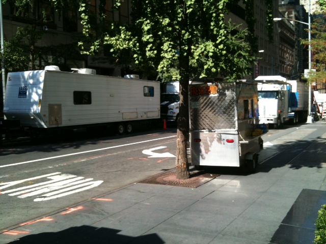 The TV show Smash is filming in Midtown today, taking up quite a bit of parking space around 44th and 6th… which could wreak havoc on food truck parking. Show your support! Cinnamon Snail is at 55th and Broadway, and Kimchi Taco 55th St. b/w 6th & 7th. Valduccis is at 52nd and Park, Crisp on Wheels is on 53rd btw Park and Madison, and Comme Ci Comme Ca is at 57th and Park. In the 40s, Okadamon is at 48th and Park, Domo Taco is at 47th and Park, and the Red Hook Lobster Truck is at the New York Public Library on 40th and 5th. Wafels & Dinges is slightly out of bounds at Columbus Circle, 60th & 5th. As always you’ll want to check the ML Twitter Tracker before heading out.