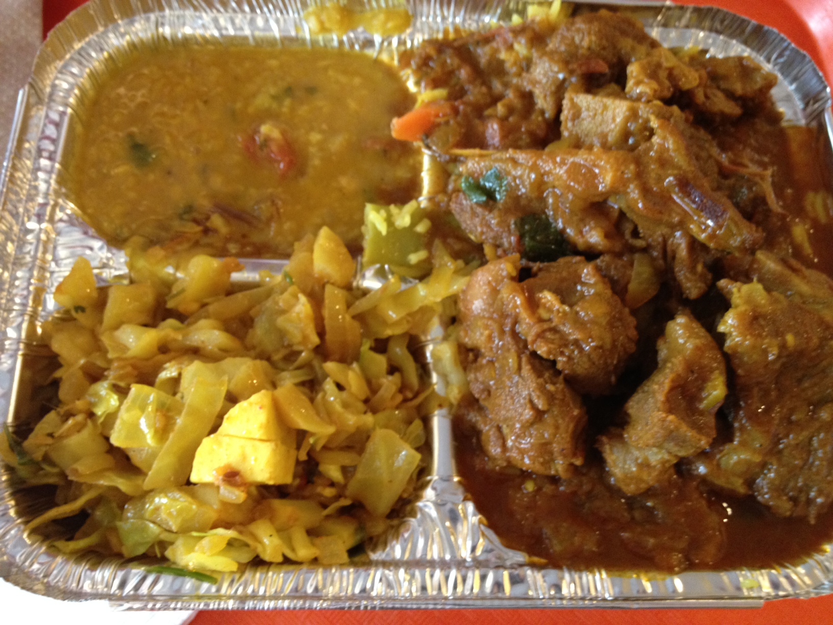 My friend ordered the goat curry combo with lentils and cabbage and cheese curry for $7.95. The goat had a mild goat flavor which was well-balanced throughout the dish. The lentils were flavorful and not watery. They were even better on the roti ($1.25), but the roti on its own was very dry. The cabbage and paneer had a distinct turmeric flavor and color, in a good way, that is if you like turmeric.