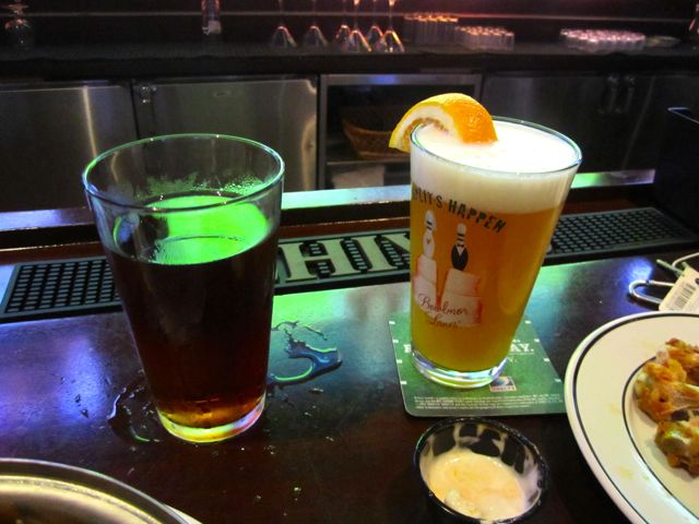 One troubling change I noticed is the length of the happy hour special. It appeared that just under two years ago, the happy hour special was just about the same deal at the old bar Blondie went to, but at Boomer’s, the special is only two hours long, from 5:00 – 7:00 pm. In all honesty, I wouldn’t be able to get out of work before 5:00 anyway, but for Midtown Lunch’ers who head for the tipple early, this is sad news. And finally I’m going to throw a gripe in here about the service. Although the bartenders who helped us were very friendly and we got free pizza toppings, it was very difficult to get his attention at such a long bar. Although the bar wasn’t crowded at 5:00 on a Wednesday, it seemed like nobody was paying attention to my beer line. I sat there empty for several minutes during those two hours… with such a short happy hour special… that clock’s a tickin’.