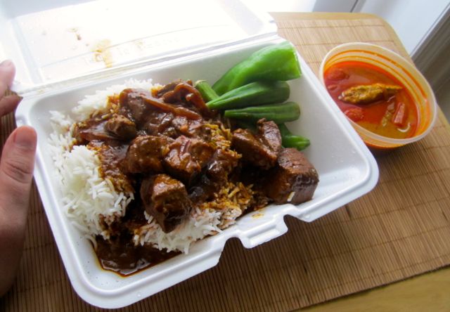 Over the last two weeks, I’ve tried two separate halal lunches, both of which were unique and tasty — and unlike anything I’ve sampled at a Malaysian restaurant in the US. (Straits Cafe, a restaurant I frequented in San Francisco, and the far less frou-frou Penang Restaurant in Elmhurst are the Malaysian restaurants I’ve tried.)
