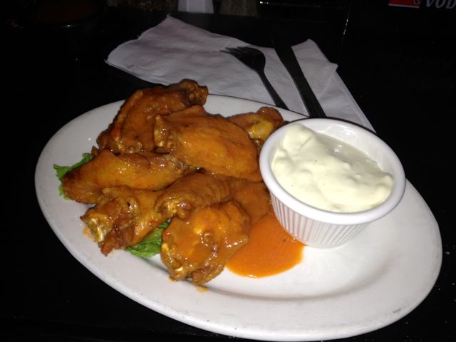 We grabbed a plate of wings of course. Poor Figaro… after Vander Bar’s massive wings I damn near flung this plate back across the bar and asked for at least four more. The taste of the wings themselves was good. The flavor was a very mild, tangy Buffalo style, and the wings were super saucy and cooked nicely. My friend really liked them. There were eight of them for $9.95 (boo) and I was scandalized by the lack of celery and/or carrots!!! To be fair, when I asked for celery the bartender happily brought out a plate. Much to my dismay, the celery was tough, and ruined further by the crappy blue cheese. Because of the price and lack of decent accompaniments, I’m afraid the wings as an overall appetizer don’t pass the test — especially for the price.