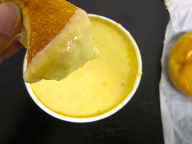 Another day I tried the lobster and crab bisque and paid an extra dollar for it. The soup was really good — so good that I didn’t even have to spike it with hot sauce. It was velvety, creamy, perhaps a little buttery, and had the sweetness of shellfish and a perfect salt balance. It was awesome to sop up with the bread. But again, where are the lumps of crab and lobster? I got a few at the bottom, which were the only evidence that this soup was even supposed to have a chunkiness to it at all.