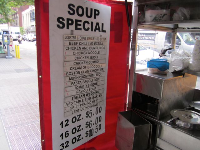 Hot Soup Cart, NE corner of 45th street and 6th avenue, seasonal