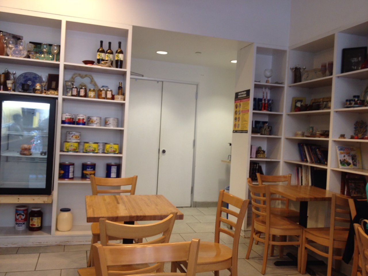 Gezunte’s other name when you search for them is “Books and Bagels”, which explains the décor…to some extent at least. For such a small space, Gezunte still feels very sparse with just a small counter for the food and a few tables. Two back walls hold a smattering of Kosher products (gallon sized tubs of what look like Mayo, massive tins of tuna, pickled items, etc) and Judaica (books, plates, goblets, etc.)