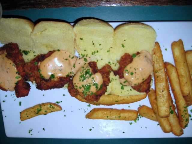We also ordered the buttermilk fried chicken sliders with spicy tomato mayonnaise. Again, a bit expensive at $10 for the portion, but we loved the crunchy breading on the tender chicken, the flavor of the mayo, and the excellent fries.