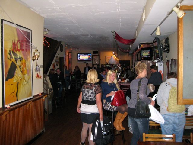 Looking around, the place was was pumping, yet unintimidating, with a good crowd of both guys and gals. The music was loud, but not so loud that it became difficult to carry on a conversation. It started out modern and mellow, then switched to good drunky 80s tunes later on. (And apparently there’s an 80s Halloween Karaoke party going on Wednesday if you can brave the Frankenstorm.)