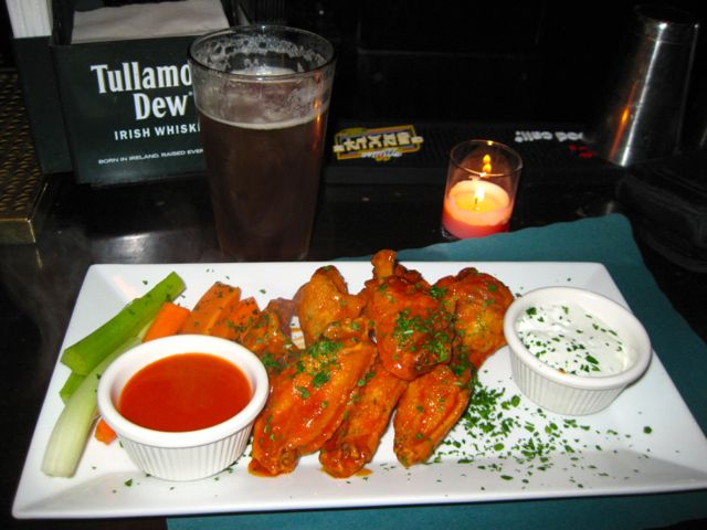 Although there weren’t any happy hour food specials here, I’ve got to admit, my friend and I were very pleased with what we ordered. The wings were on the pricy side at $10 for 8 normal-sized wings, but they were fantastic. The sauce was very buttery with a lovely, delayed Buffalo-style heat. They were cooked nicely — juicy but not soggy and limp. The blue cheese sauce was one of the best I’ve tried in Midtown; it was certainly the chunkiest, and had a well-balanced flavor. The carrots and celery did not disappoint.