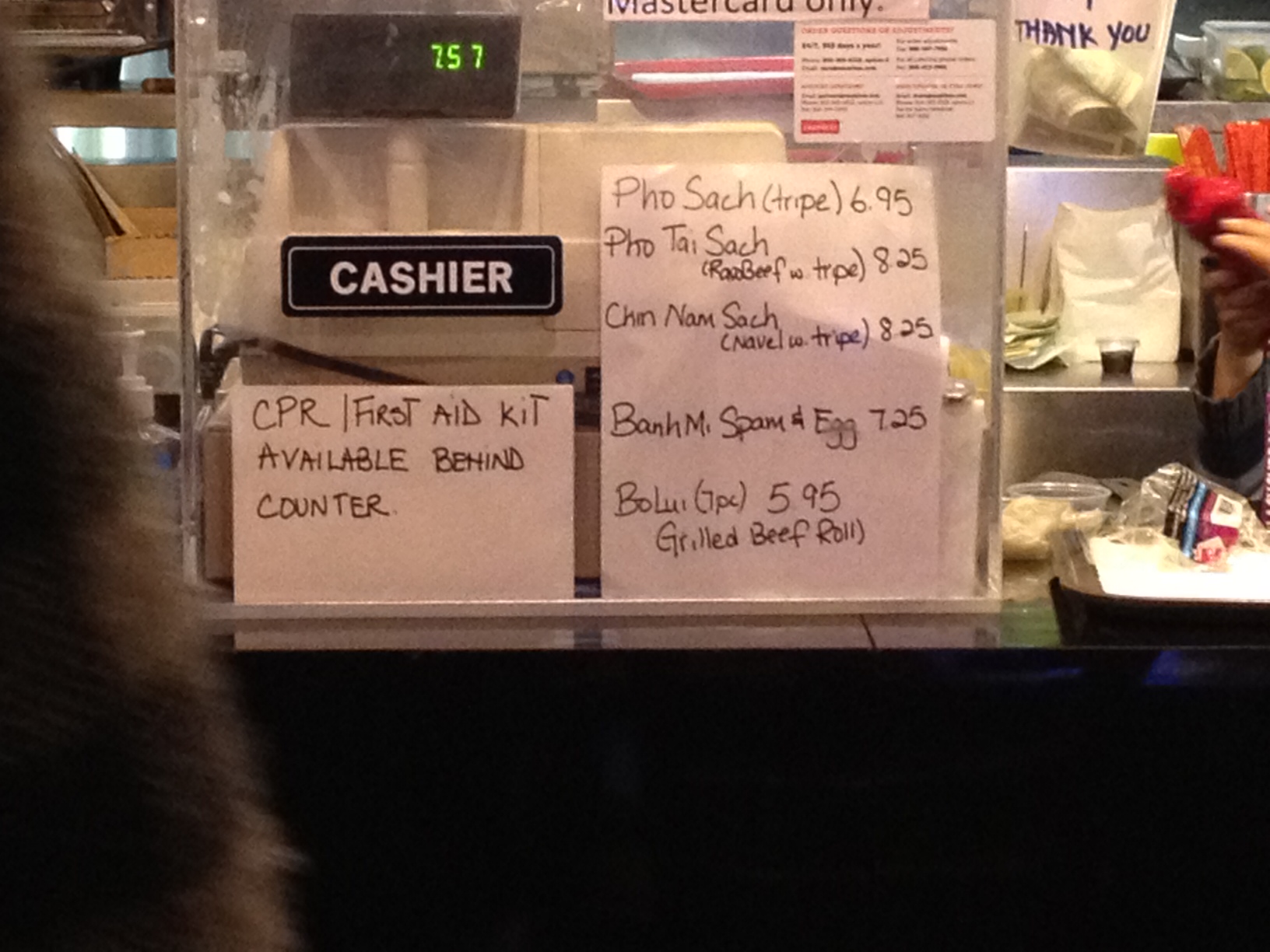 Keep in mind the two items I ordered are just a small part of the menu, and with sheets of paper with extra items, your options are plentiful. In fact, I had extra room in my budget, I should have also gotten the salty lemonade for $2.75 that caught my attention. Next Time. With tripe pho.