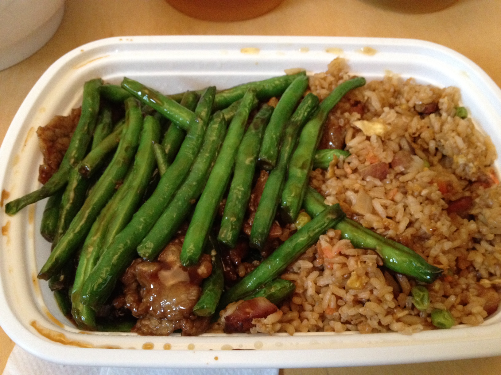 The beef and green beans lunch special ($7.55) was also a great deal, even if it wasn’t as massive as the noodle bowl. The lunch specials are offered with the option of pork fried rice instead of white rice. At no extra cost!! And on top of that, the lunch specials all come with a soup (egg drop or wonton soup) or soda. The pork fried rice was great and the beef with green beans had a good sauce, but the beef could have been better.