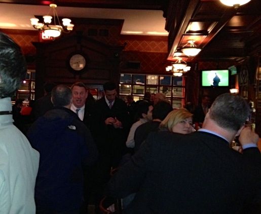 First off, it’s a commuter bar through-and-through. Mere steps from Grand Central Station, it’s crowded every night of the week it seems, starting at about 5. There’s even a Grand Central train schedule on one of the TVs that looks like it was rigged up by some inside guy who ran a cable from the station, under the street, and right into the bar. A lot of chugging and quick eating happens here, like you would expect inside a train station or at an airport. The traveler in me enjoys that feel in a bar. They bartenders are keyed into that quick-turnaround mentality.