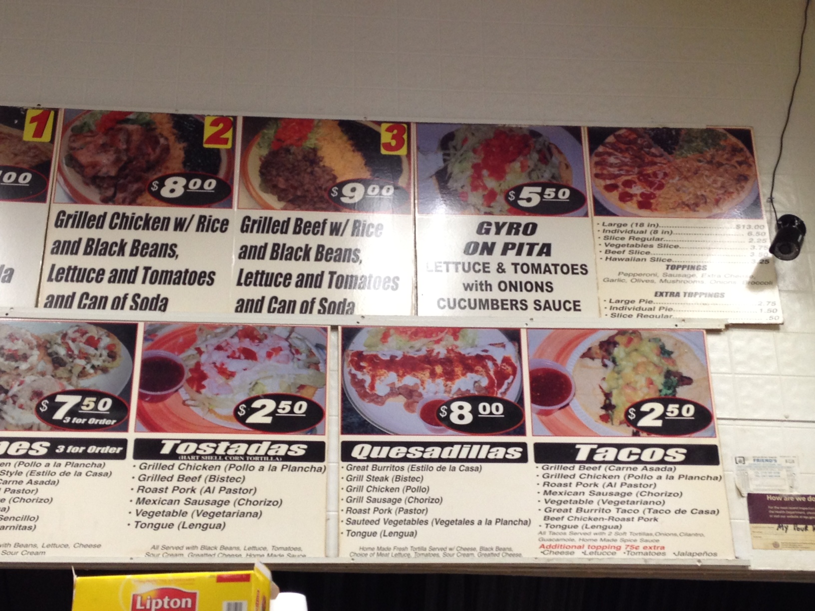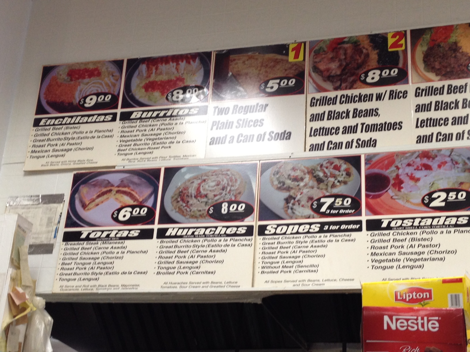 After reading a little in the comments section of Jason’s post and on yelp about the pizza, AND after seeing it in person, I rethought my plan. Do I really need to try pizza that had been made who knows how long ago and then each slice topped individually? No, no I do not. Some deceased pizzaiolo in Naples are rolling over in their graves. Forget that. I’m sticking with Mexican food!