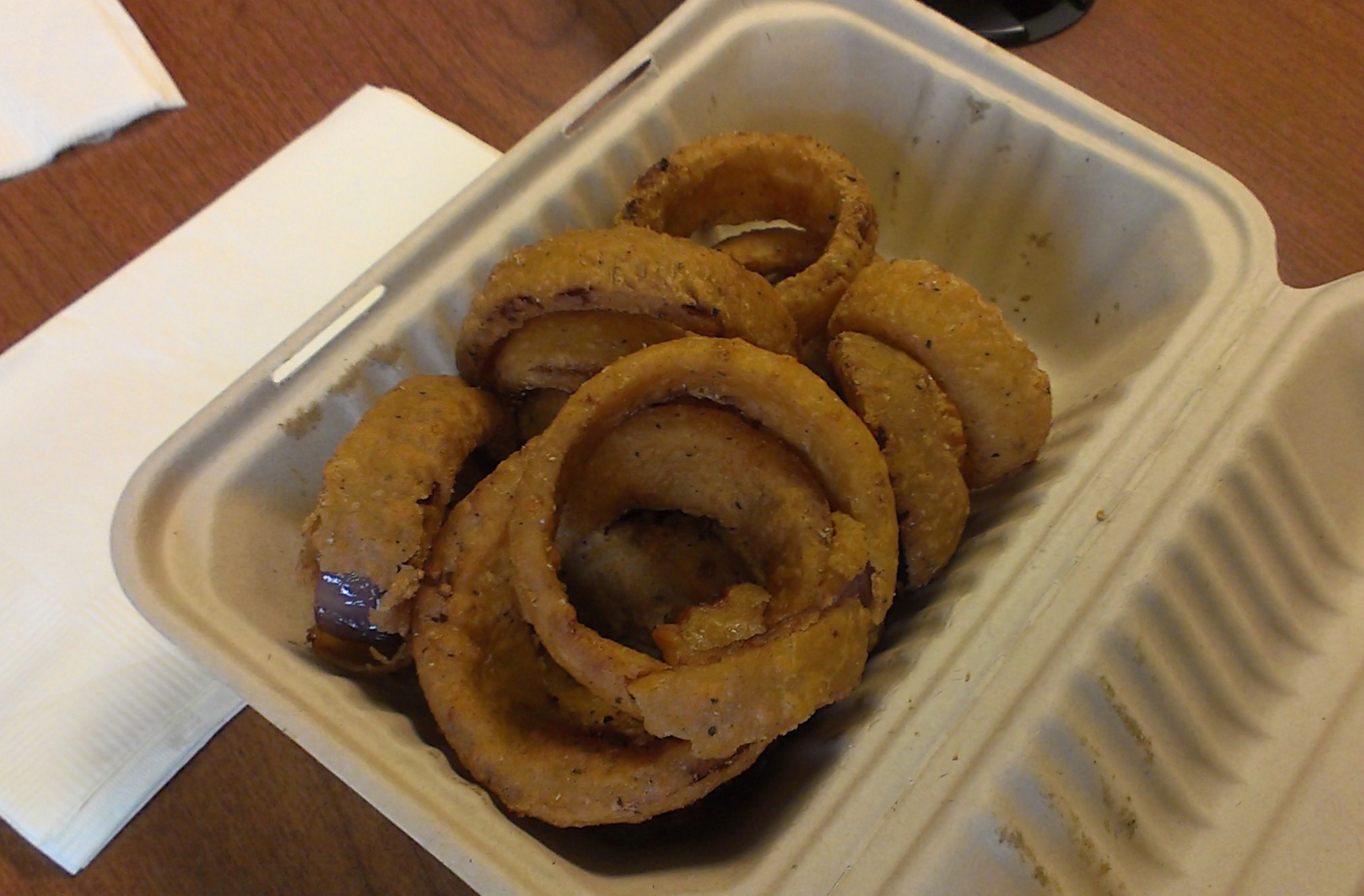 And how could you have a burger without fries? We tried all Treehaus had to offer: regular french fries ($2.50), sweet potato fries ($3.00), and onion rings ($3.00). Both regular and sweet potato were good, the regular particularly so, but the onion rings really stood out. They were thick cut, well-battered, and made with red onion, a different, and nice, choice.